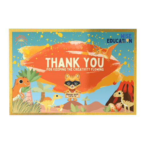 Like all great stories, it’s best to start at the beginning with Bandit Box 1: Starter Explorer. Our first box follows the story of Bandit the Crafty Cat through prehistoric times in order to find the missing items from the Workshop. Once Bandit finds a treasure chest, he sends it out to all the Bandit Box Adventurers every month to make sure everyone around the world can find the fun! Starter Explorer is jam-packed with theme-related art, craft and STEM-related activities and toys for children aged 4 to 12, and comes with 30 days access to our Online Workshop and 4 weekly Community Chats.